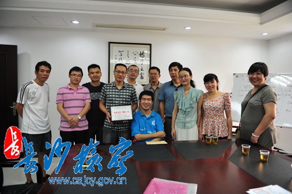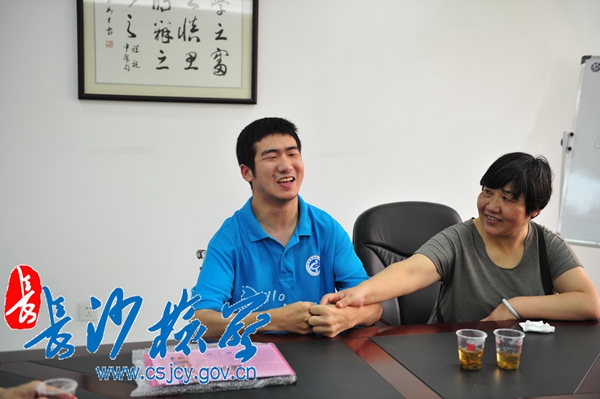 2014年8月22日上午,初秋的阳光映在莫天池爽朗的笑容上更显灿烂,公诉二处党支部会议室因为这位特殊客人的到来弥漫着浓浓的爱意与感动。由“脑瘫少年”成长为“轮椅才俊”的莫天池坐着轮椅在父母及长沙市岳麓区桔洲社区岳南村王革红主任的陪同下,专程向公诉二处的检察官哥哥姐姐们致谢并汇报近年来取得的成绩。