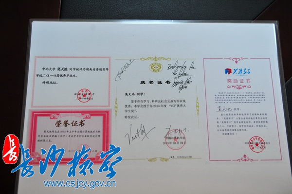 图4:莫天池的部分获奖证书