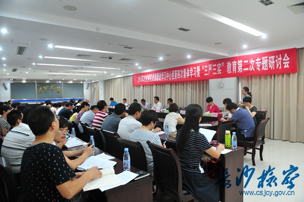 会议学习了习近平总书记关于“三严三实”等重要系列讲话精神及上级有关文件,学习了《领导干部违纪违法典型案例警示录》、《长沙市践行“三严三实”先进典型事迹汇编》等参考资料。院领导徐百坚、姚湘中、薛乐基、闵文等8名中心组成员围绕“严以律己,严守党的政治纪律和政治规矩,自觉做政治上的‘明白人’”作了中心发言,其他 10名副处级干部紧扣主题,结合各自工作实际作了研讨交流。