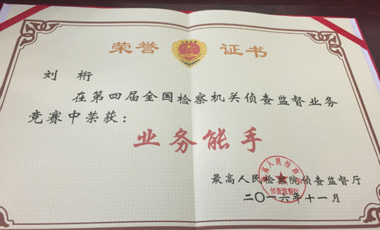 参加此次业务竞赛, 通过侦查监督实际能力考察、侦查监督实务笔试、侦查监督业务答辩三个环节的比拼,最终以总分第21名获“全国检察机关侦查监督业务竞赛业务能手”称号。