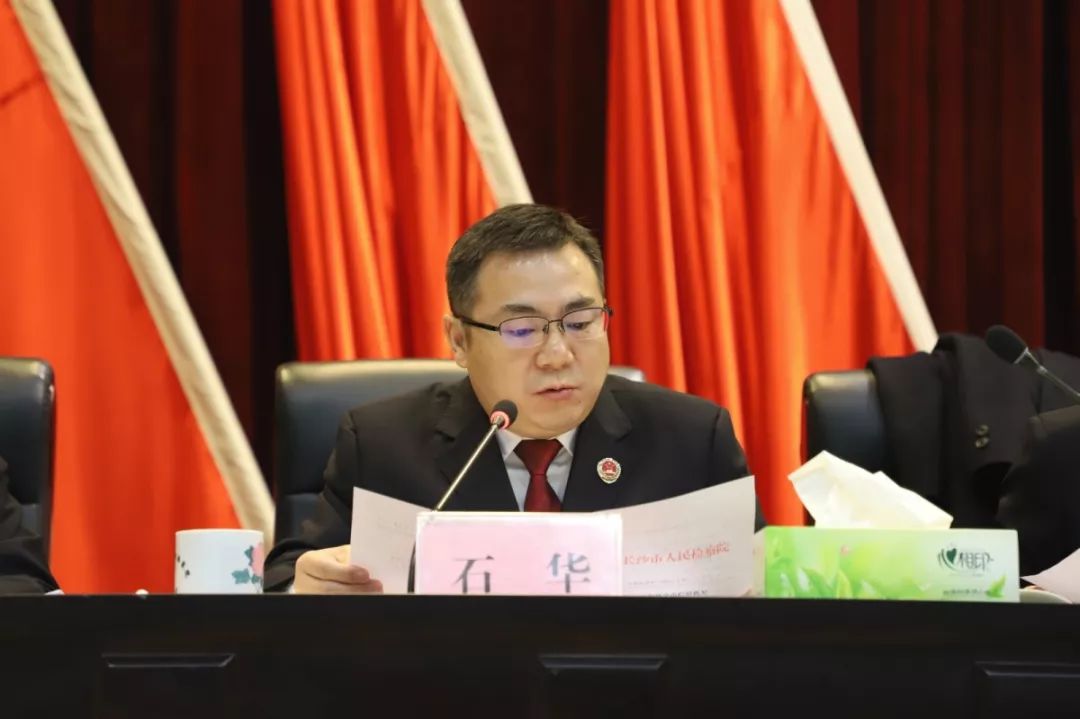 市检察院党组成员、政治部主任石华宣读2018年度全市检察机关优秀案件表彰决定。
