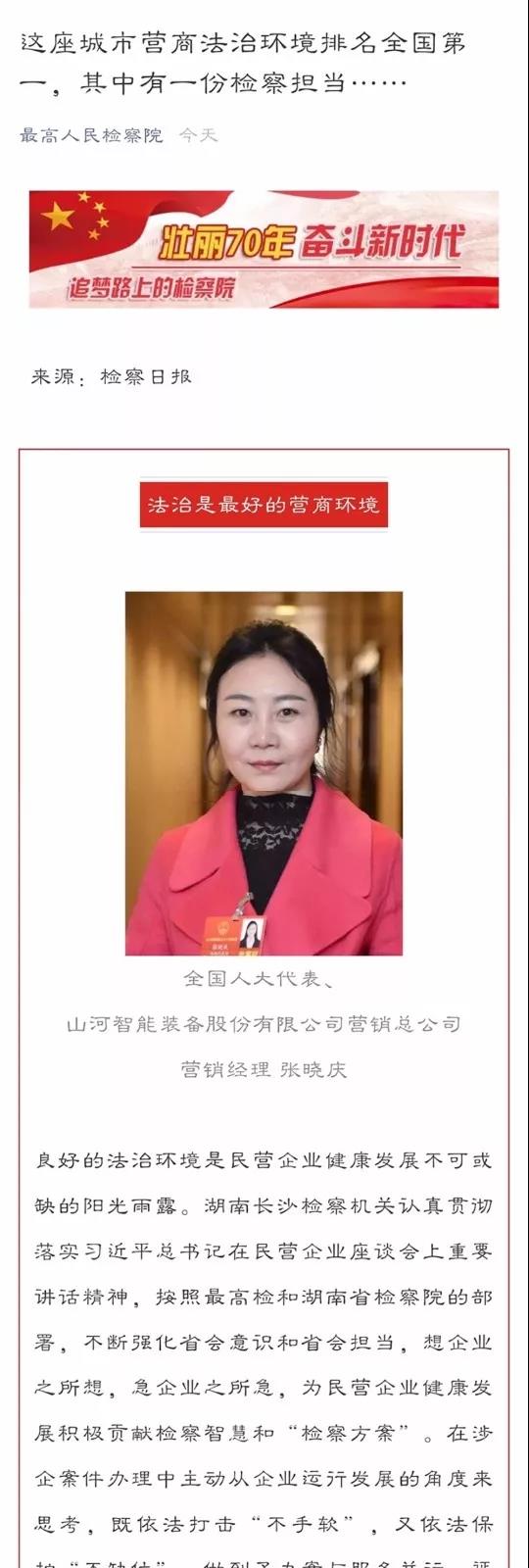 2019年6月25日,最高人民检察院微信公众号、最高人民检察院官网、《检察日报》头版同步推介长沙检察机关着力打造服务民营企业发展升级版,充分发挥检察职能作用,不断创新司法服务新模式,为民营企业高质量发展营造良好的法治环境,提供优质的检察产品的经验做法。