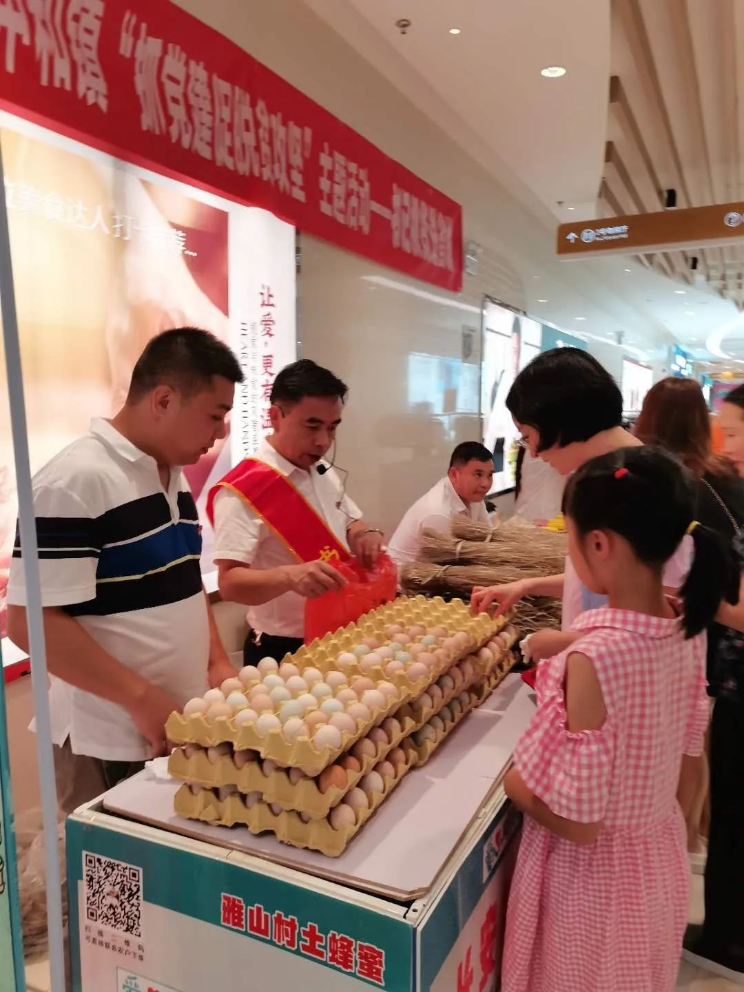 土鸡蛋一板板摞起来,红薯粉丝、土蜂蜜、茶籽油、富硒火龙果依次排开……昨日上午8点半,商场大门尚未开,甘恩汝和扶贫干部们就忙碌了起来,他们精心布置展区,小心摆放货品,希望能第一时间吸引到市民目光。