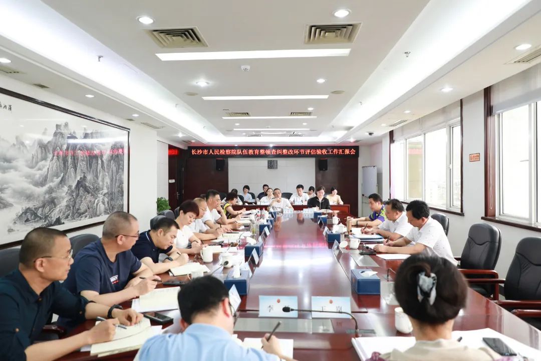 在汇报会上,指导专班采取会议座谈、现场问答、查阅资料等方式对市检察院政法队伍教育整顿查纠整改阶段工作开展情况进行了验收评估。市检察院全体在家院领导,教育整顿各专班、各工作组负责人等参加会议。