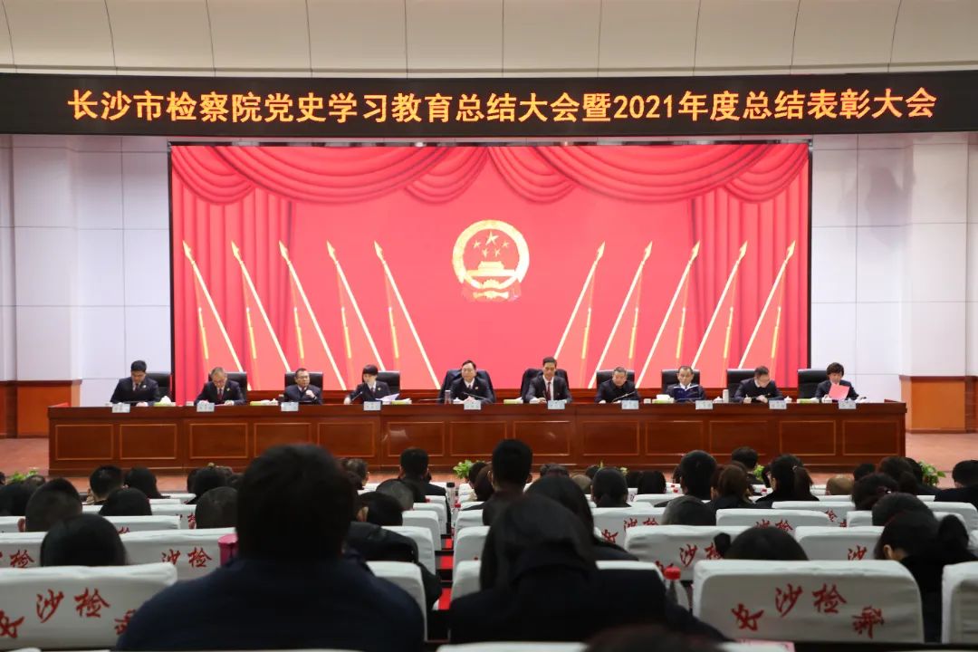召开党史学习教育总结大会暨年度总结表彰大会,全面总结党史学习教育、年度检察工作的成效、收获和启示,进一步激励全体检察干警在新征程上推动长沙检察事业高质量发展。市检察院党组书记、检察长余湘文出席会议并讲话,会议由党组副书记、副检察长李宗戈主持。