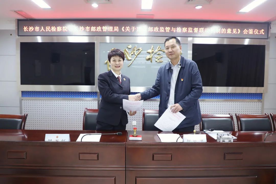 党组副书记、副检察长周亚红与长沙市邮政管理局党组成员、副局长、纪检组长赵红卫会签《意见》