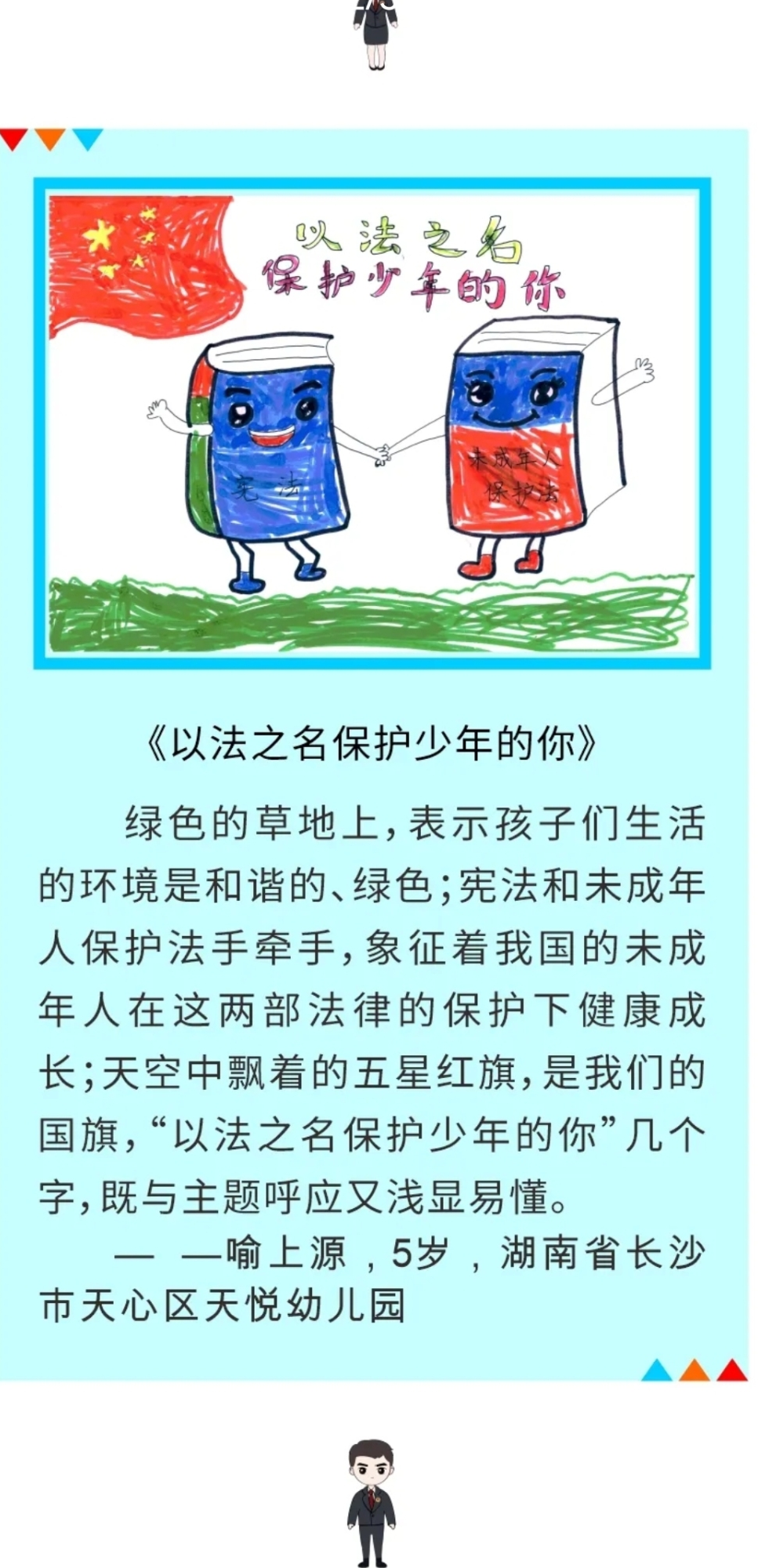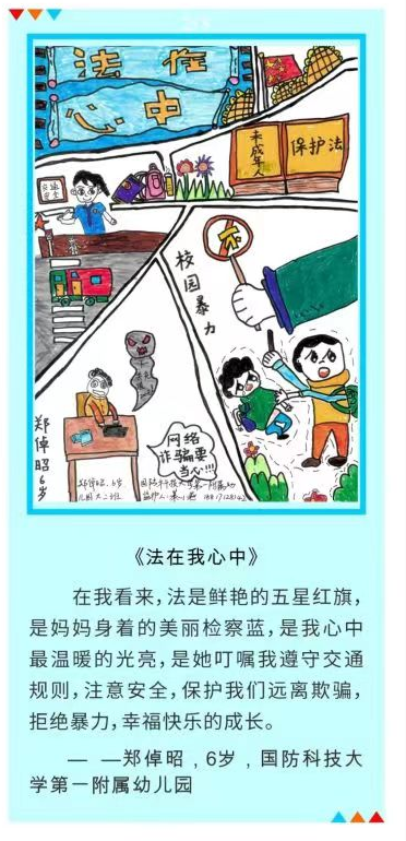 天心区检察院开展“以法为名,保护少年的你”主题绘画作品征集活动,邀请孩子们用手中的画笔表达对“法”的理解。