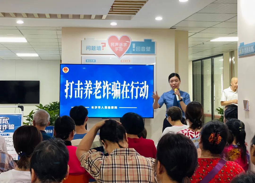 现场有一百余名老年群众朋友到场认真聆听。活动中,检察官通过分享老年人常见骗局的方式,如针对老年人群体的养老服务骗局、投资养老骗局、冒充类诈骗手段、保健品骗局、免费礼品骗局等,再结合当前大家普遍关心关注的养老产品、养老保险等领域的诈骗案例,向群众详细剖析了诈骗分子的惯用手法、作案方式,为在场群众作了一场精彩的法治宣讲。同时,检察官还叮嘱老年朋友不要贪图小利,世上没有免费的“午餐”,天上也不会掉“馅饼”,不可听信陌生人的“甜言蜜语”,遇到可疑情况,要第一时间与子女沟通或拨打报警电话,防止不必要的财产损失。