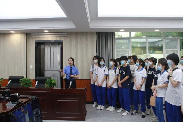 6月17日,雨花区检察院开展“暖心法治礼、送给少年的你”主题检察开放日活动,长沙市南雅中学高一年级60名学生及部分家长参加。图为检察官彭舟在为学生介绍检察机关案件公开听证室。