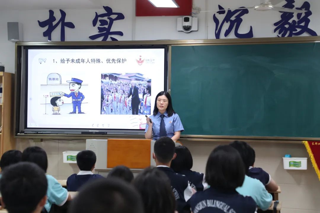 积极与长郡双语实验中学搭建“检校共建”平台,联合打造“检察官进课堂”特色普法品牌,为学校提供精准、高效、系统的法治教育服务。根据学校的法治教育需求,已有20余名未检检察官先后走进该校初中各年级课堂,开展各种形式的普法宣讲,深受师生们的欢迎与好评。