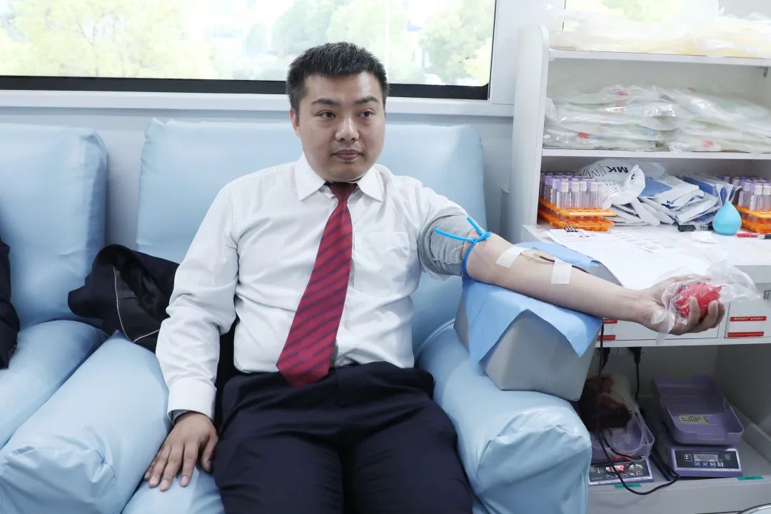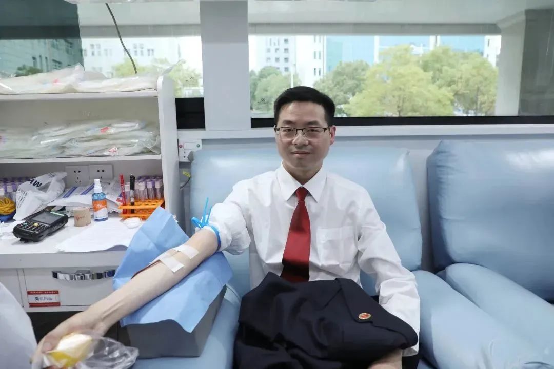 献血活动现场,市检察院党组成员、副检察长陈芳率先挽起衣袖、伸出手臂,献出自己的爱心。其余志愿者也按照医护人员的引导,进行登记填表、健康征询、血液检测等,最终将一颗颗赤诚的爱心化作了一袋袋温暖的血液。此次无偿献血,市检察院共有26名志愿者成功献血,共计献血9100ml,表达了检察人员对人民群众“血浓于水”的情谊。