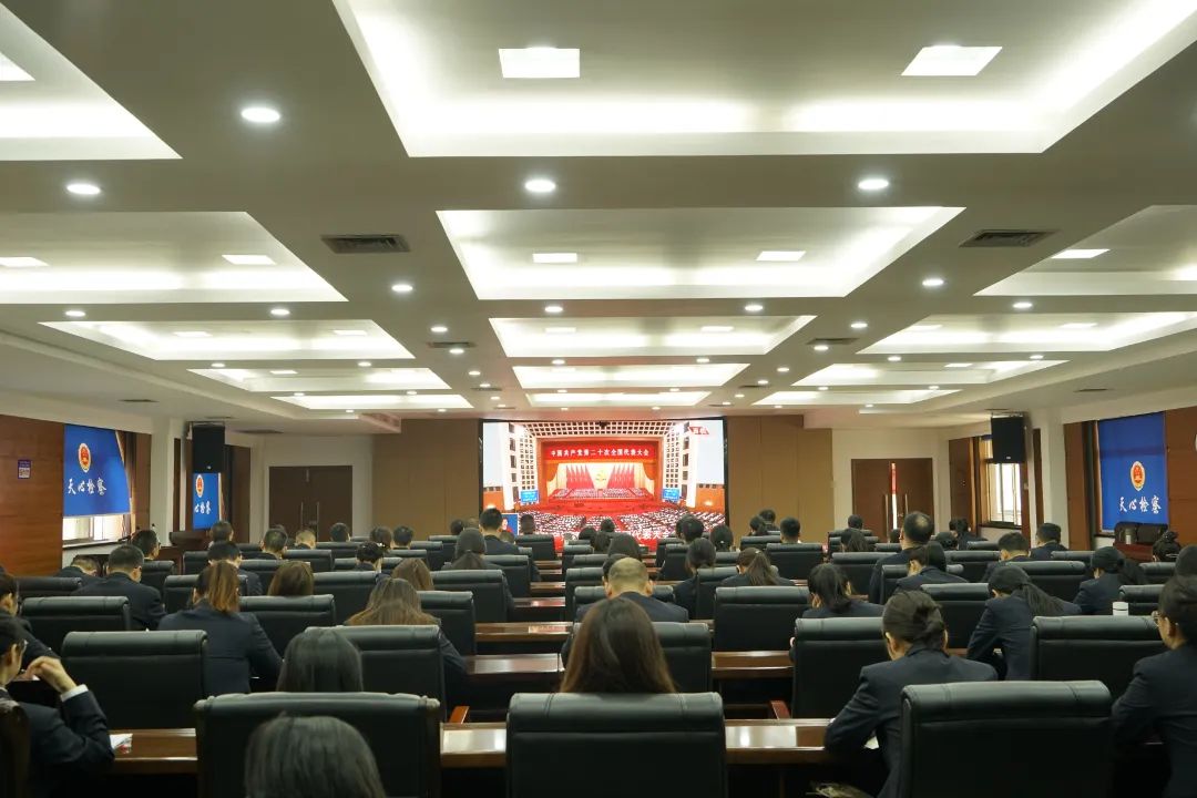 岳麓区检察院领导班子和各内设机构正、副职集中观看中国共产党第二十次全国代表大会开幕盛况,大家倍受鼓舞,倍感振奋,表示将积极弘扬伟大建党精神,以更高站位、更高标准、更高要求,把各项检察工作落到实处、做到极致,自信自强、守正创新,踔厉奋发、勇毅前行,为全面建成社会主义现代化强国、实现第二个百年奋斗目标提供法治保障、作出检察贡献。