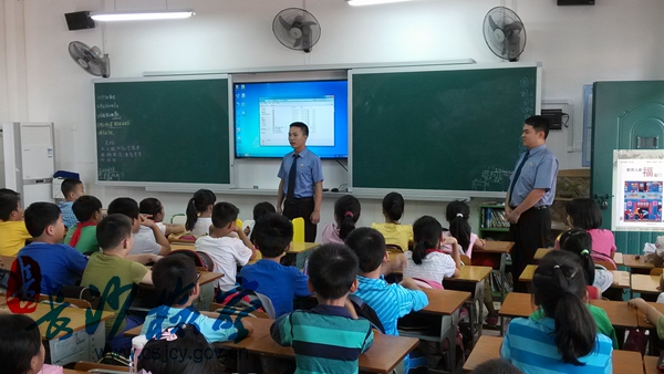2014年10月9日,天心区检察院检察官喻曦、李利军一行到天心区青园小学五三班上了一堂生动的法制教育课。针对小学生的个性特点,喻曦首先与孩子们一起观看了“法律伴我成长”的卡通片,接着采取提问互动形式给孩子们分析了考试作弊、偷拿他人财物等不良习惯可能导致的严重危害,结合多媒体视频列举了打架斗殴、盗窃等经典案例,并与孩子们分享拾金不昧、遵守公共秩序的身边故事。