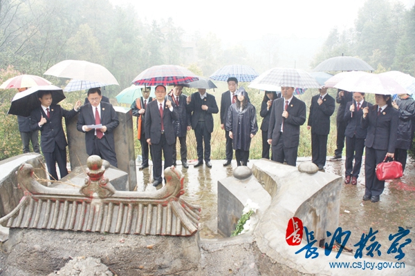 清明时节雨纷纷。3月26日上午,长沙市宁乡县检察院党组成员、副检察长陈卓平带领反贪局全体干警和部分青年干警一行二十余人前往宁乡县双凫铺镇祭奠欧阳海军同志。在欧阳海军同志墓前,干警们通过敬献鲜花、默哀等方式缅怀英雄,寄托哀思。