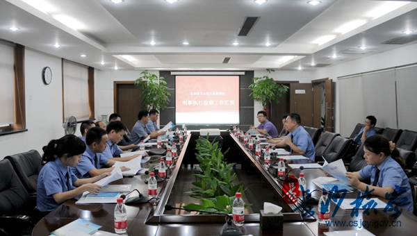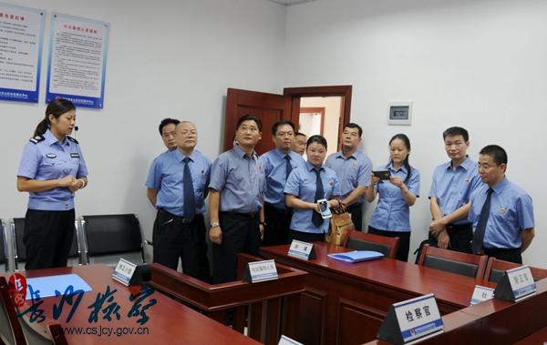 8月27日下午,出席全省刑事执行检察工作会议的代表人员,在国产色情视频 人民检察院刑事执行检察处处长李胜昔带领下,来天心区检察院现场观摩刑事执行检察工作。