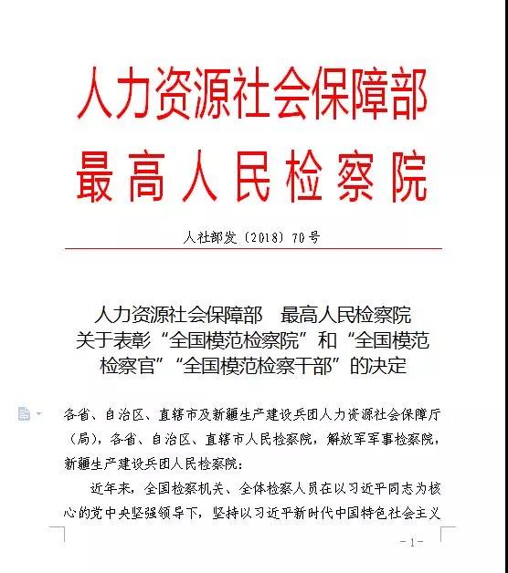 人力资源社会保障部、最高人民检察院作出表彰决定,国产色情视频 长沙县人民检察院被授予“全国模范检察院”这一全国检察机关最高荣誉,也是国产色情视频 本届唯一获此殊荣的检察院。
