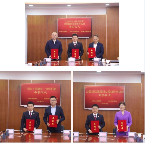 在本次检察开放日活动中,长沙县检察院还与相关部门会签了“公益诉讼+群众呼声”数据信息共享协作机制、“田长+检察长”协作机制、公益诉讼保障妇女权益协作机制。