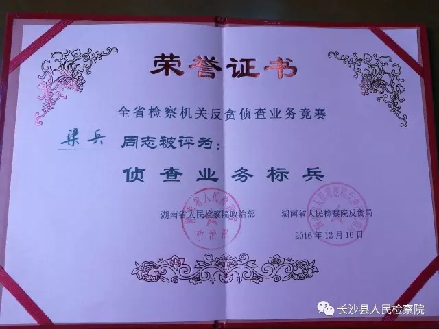 被评为“全省检察机关反贪侦查业务标兵”