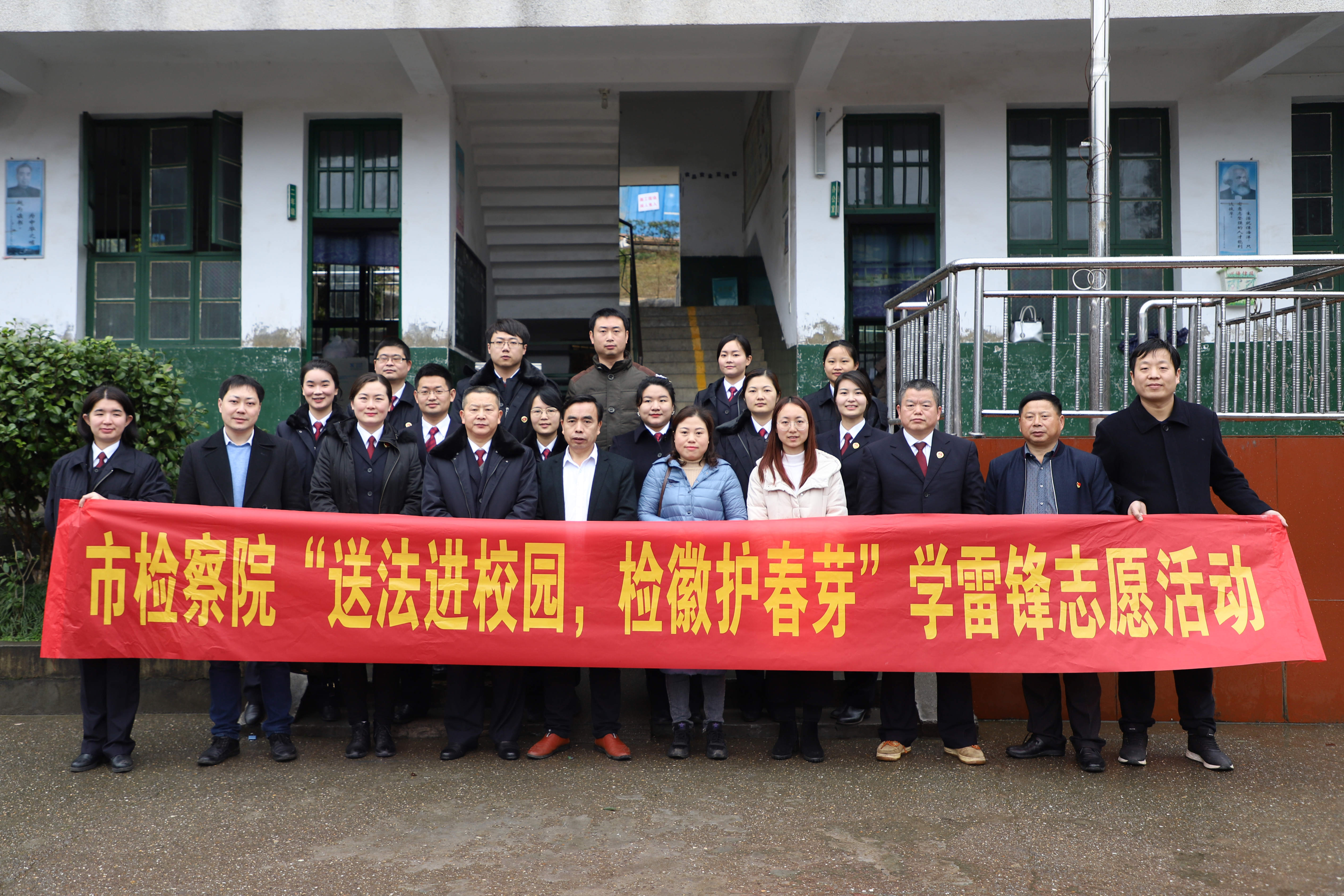 在淅淅沥沥的春雨中,市检察院和浏阳市检察院学雷锋志愿者服务队的10余名青年干警在市检察院党组成员、机关党委书记、工会主席薛乐基的带领下来到了小江口小学。