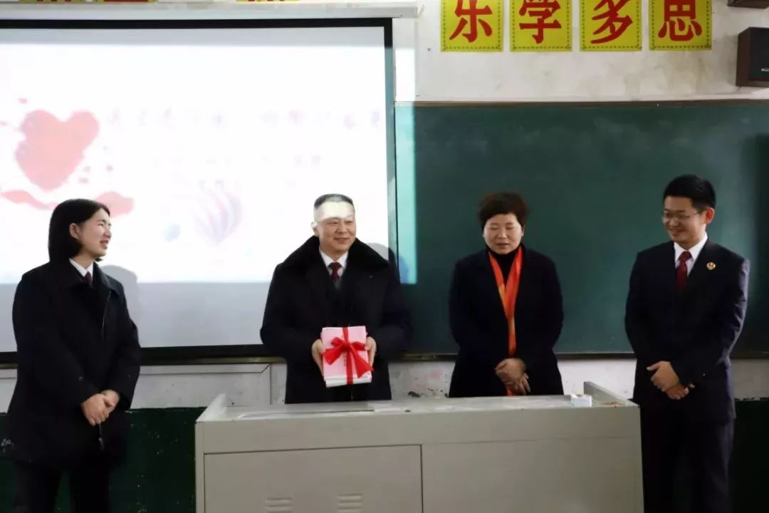 薛乐基受国产色情视频 党组委托,代表市检察院向小江口小学捐赠192套校服、60册儿童书籍、1000元的学习文具。