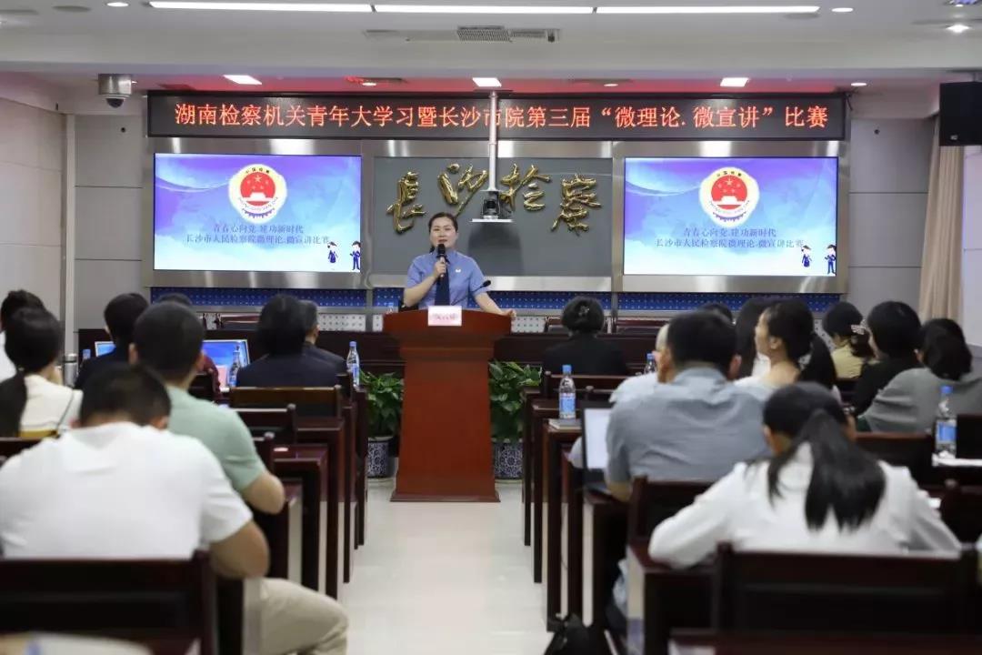 4月24日,湖南检察机关青年大学习暨国产色情视频 第三届微理论·微宣讲活动鸣锣开讲。本次活动的主题是“青春心向党·建功新时代”。经过挑选,来自市检察院机关9个党支部的青年代表参与最终角逐。