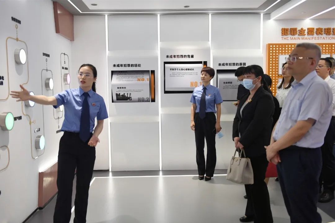 30余名市人大代表、政协委员、专家学者,法院、公安、司法、教育、民政、文旅、卫健、共青团、妇联、关工委等单位分管领导或相关部门负责人以及学生代表60余人参加活动,参观了开福区检察院未检办案区——“向阳护未站”。