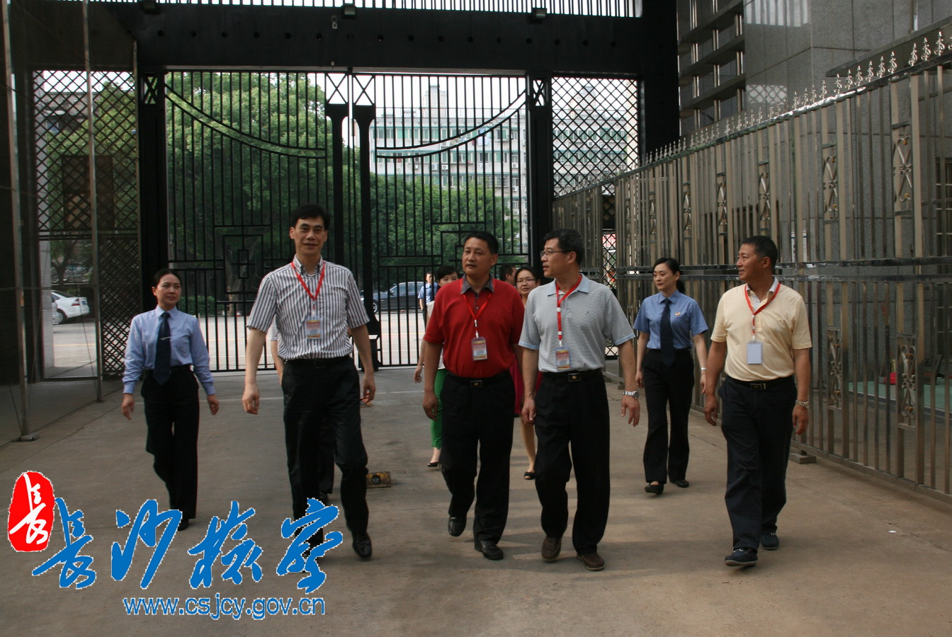 2014年5月28日,高检院政治部检察官管理处处长徐玉林和监所检察厅监外执行检察处处长黄耕一行到我市星城地区检察院调研派驻监管场所检察室建设。