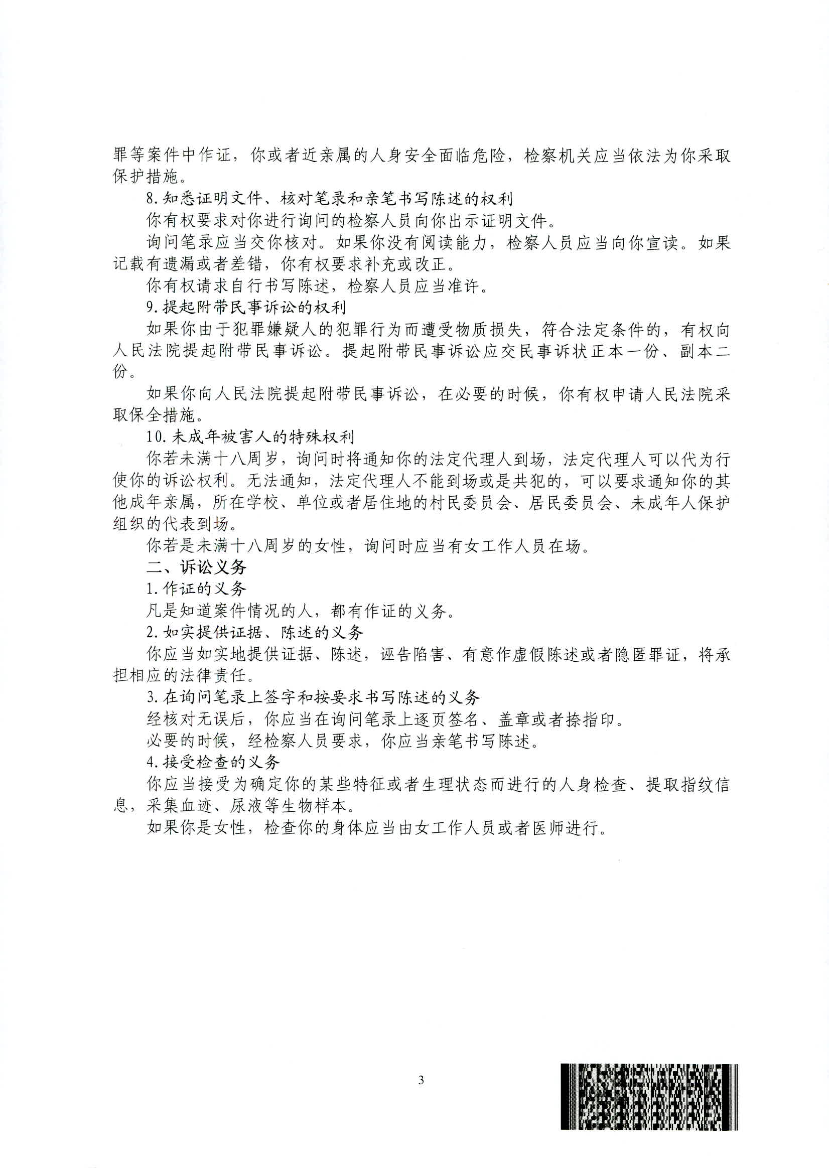 伍文杰等人涉嫌诈骗案权利义务告知书