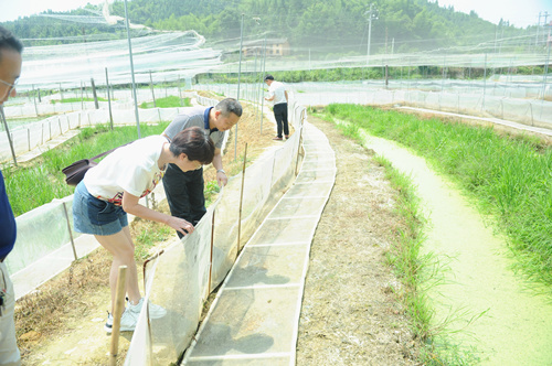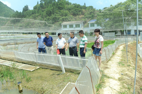薛乐基、周亚红首先来到黑斑蛙养殖基地,实地查看产业扶贫工作开展情况。村里的黑斑蛙养殖基地是按照中和镇一村一品的要求,在听取贫困户意见的基础上发展起来的,目前已养殖黑斑蛙25亩,泥鳅1万尾,鲫鱼5000尾,预计年产黑斑蛙2.5万余公斤,泥鳅3000余公斤,鲫鱼2000余公斤,贫困户每户可增收3000余元。薛乐基指出,脱贫攻坚产业是支撑,增收是关键,驻村工作队要注重总结经验、打造品牌,确保产业扶贫巩固拓展,稳定产生经济效益。