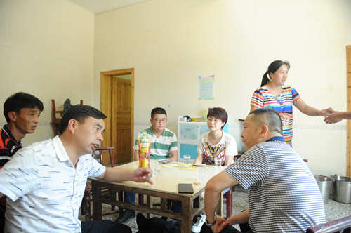 随后,薛乐基、周亚红走访了结对帮扶贫困户。在贫困户胡耀先家,周亚红详细了解了胡耀先的家庭情况和帮扶需求,为胡耀先送上了帮扶发展资金。得知全体贫困户推荐胡耀先负责管理黑斑蛙养殖基地,周亚红鼓励他一定要挑起担子,坚定信心,通过自身的努力及政府的帮扶,带领贫困户齐心协力勤劳致富,早日摘掉贫困的“帽子”。贫困户吴高玉的妻子常年瘫痪在床,儿子患有精神疾病,缺乏稳定的收入来源,增收致富的信心严重不足。薛乐基勉励他要坚定信心、自强不息,有困难及时向镇村干部反映,立足自身条件发展畜禽养殖,提高收入水平。薛乐基的来访让吴高玉老人非常感动,他激动地说:“现在国家政策真是好,政府替我们这些困难群众想得真周到,我们这个家全靠政府帮助才能撑下去,是政府给了我们希望,感谢政府呀!”