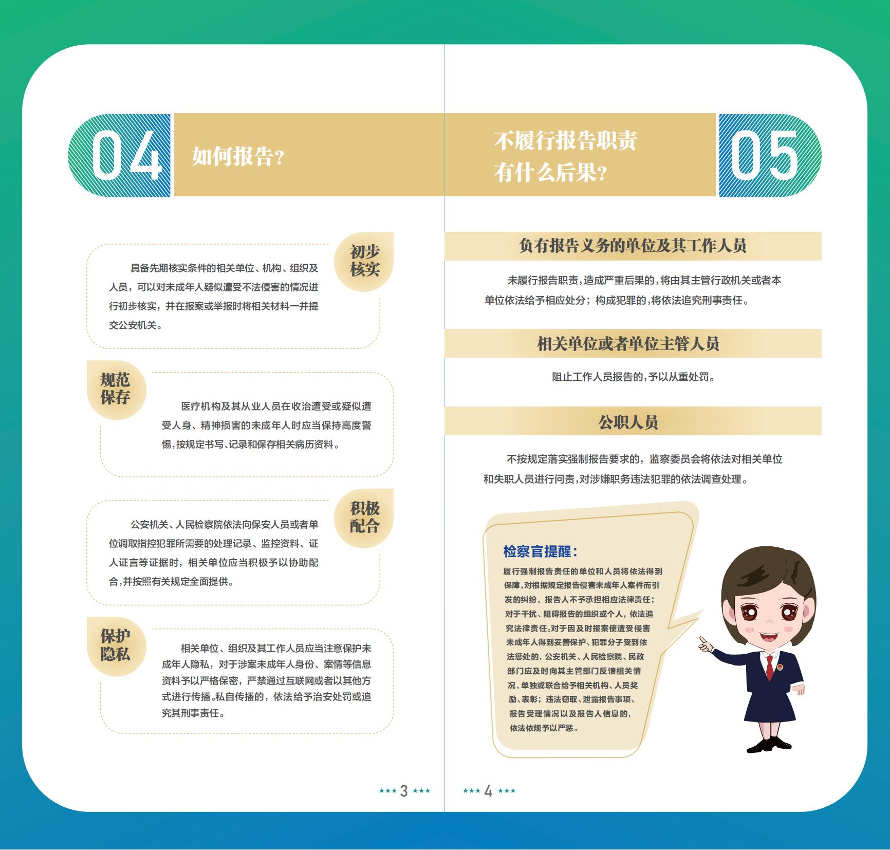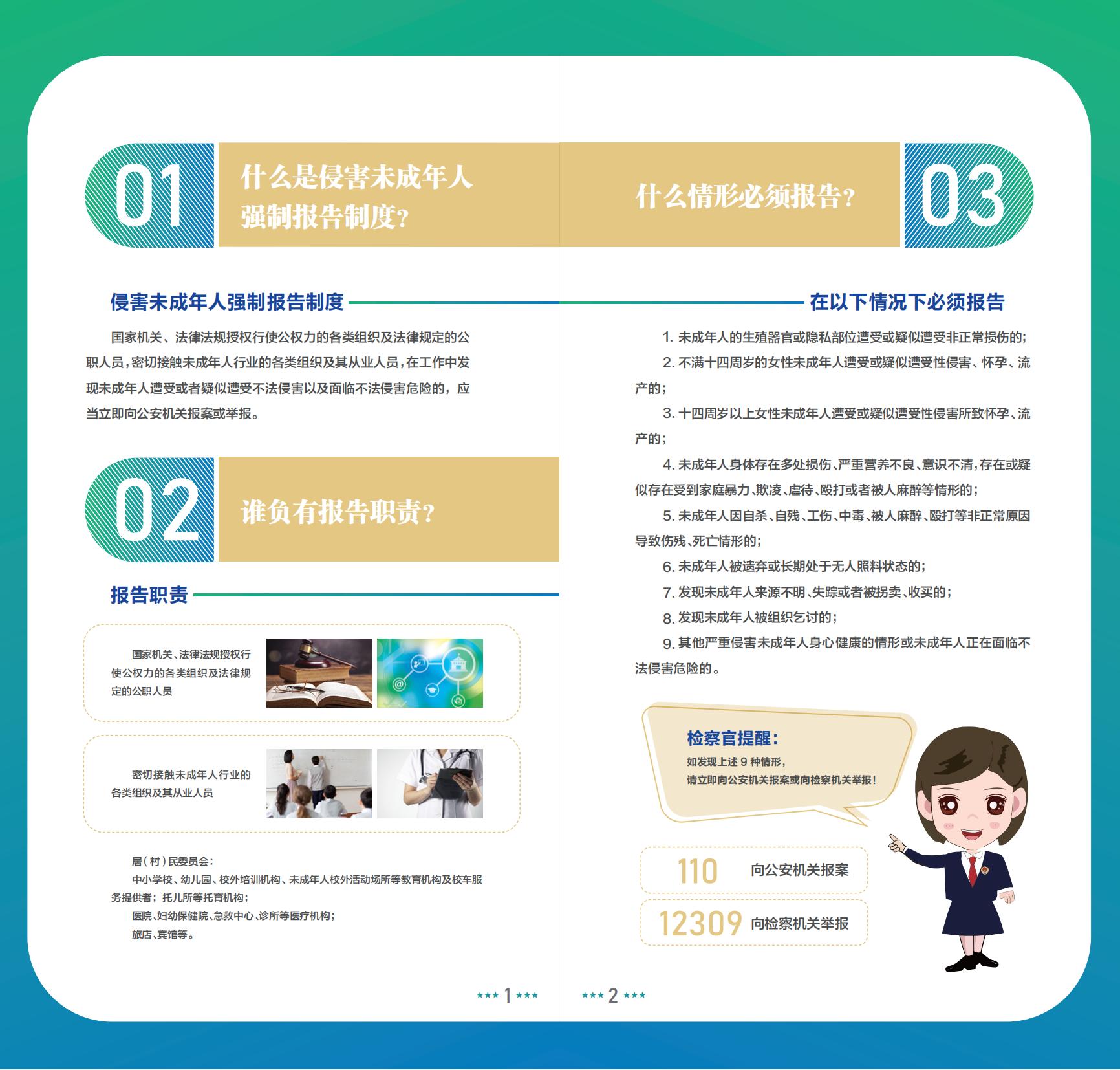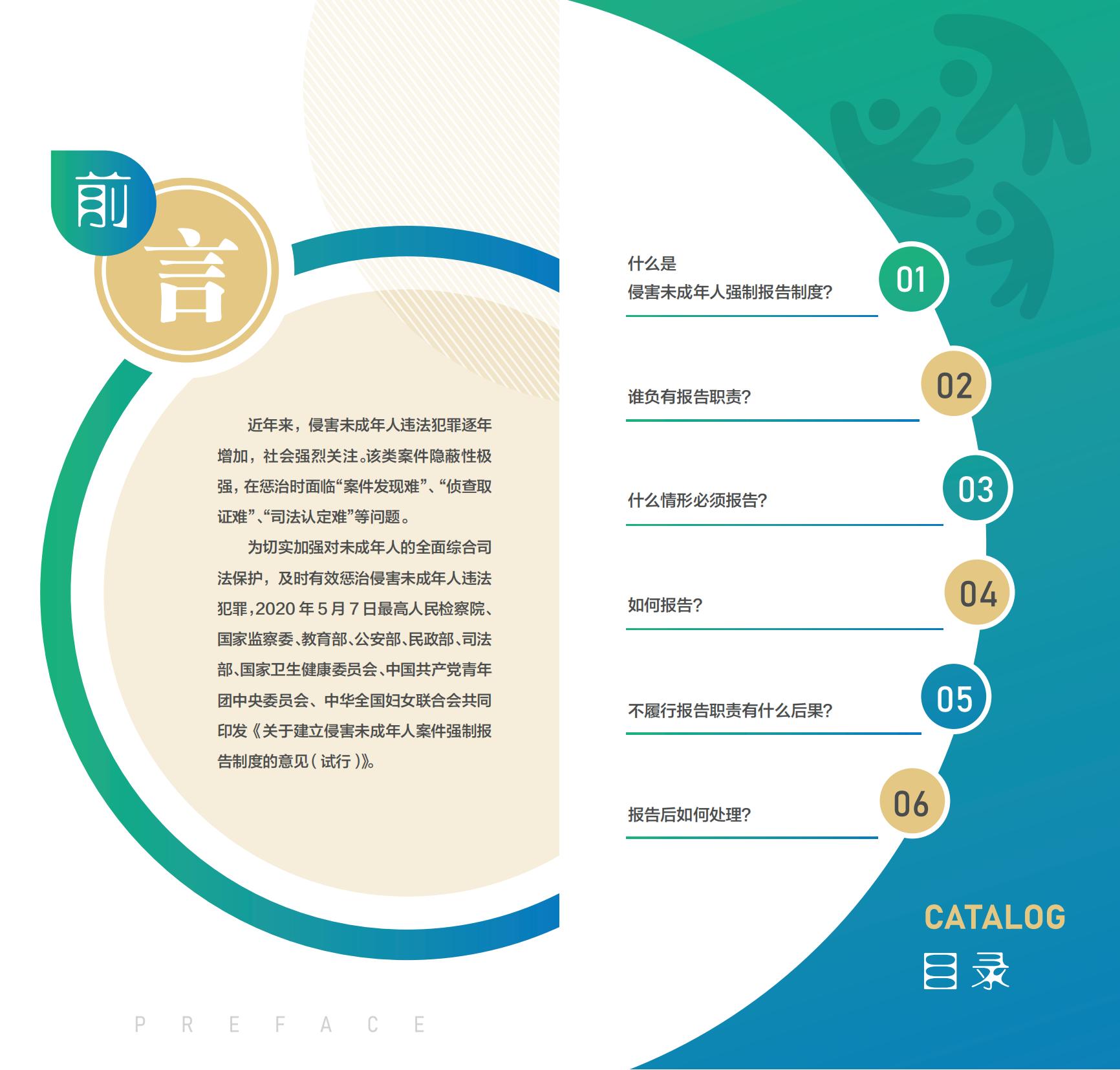 近年来,侵害未成年人的案件不断上升,为及时干预、惩治、预防侵害未成年人犯罪,切实加强对未成年人的全面综合司法保护,近日,国产色情视频 编制印发了《侵害未成年人案件强制报告制度》宣传手册,快来看看吧!