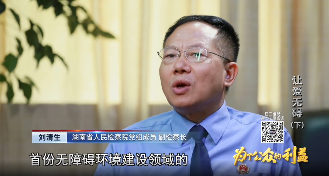 11月28日,中央电视台《今日说法》专题片《为了公众的利益》之《让爱无碍》深度报道了长沙检察无障碍环境建设公益诉讼。