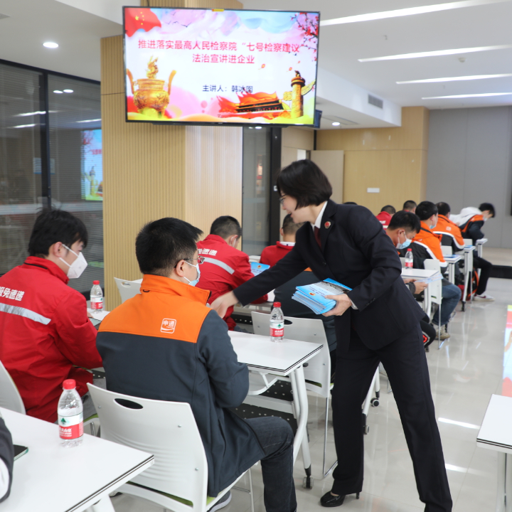 第二检察部的检察官们来到中通快递湖南管理中心开展“送法进企业”普法宣传活动。检察官韩冰囡为全市快递从业人员代表开展了题为《快递小哥严把控,筑牢寄递安全网》的法治讲座,从“快递业涉毒的严峻形势、算明白快递业禁毒四笔账、毒品包裹的识别与处置、快递小哥的保护机制与技巧”四个方面进行了宣讲,并向现场听课及快递网点的从业人员发放了寄递安全宣传资料200余份,送达《致全市物流寄递企业的一封信》《致全市快递小哥的一封信》400多张。