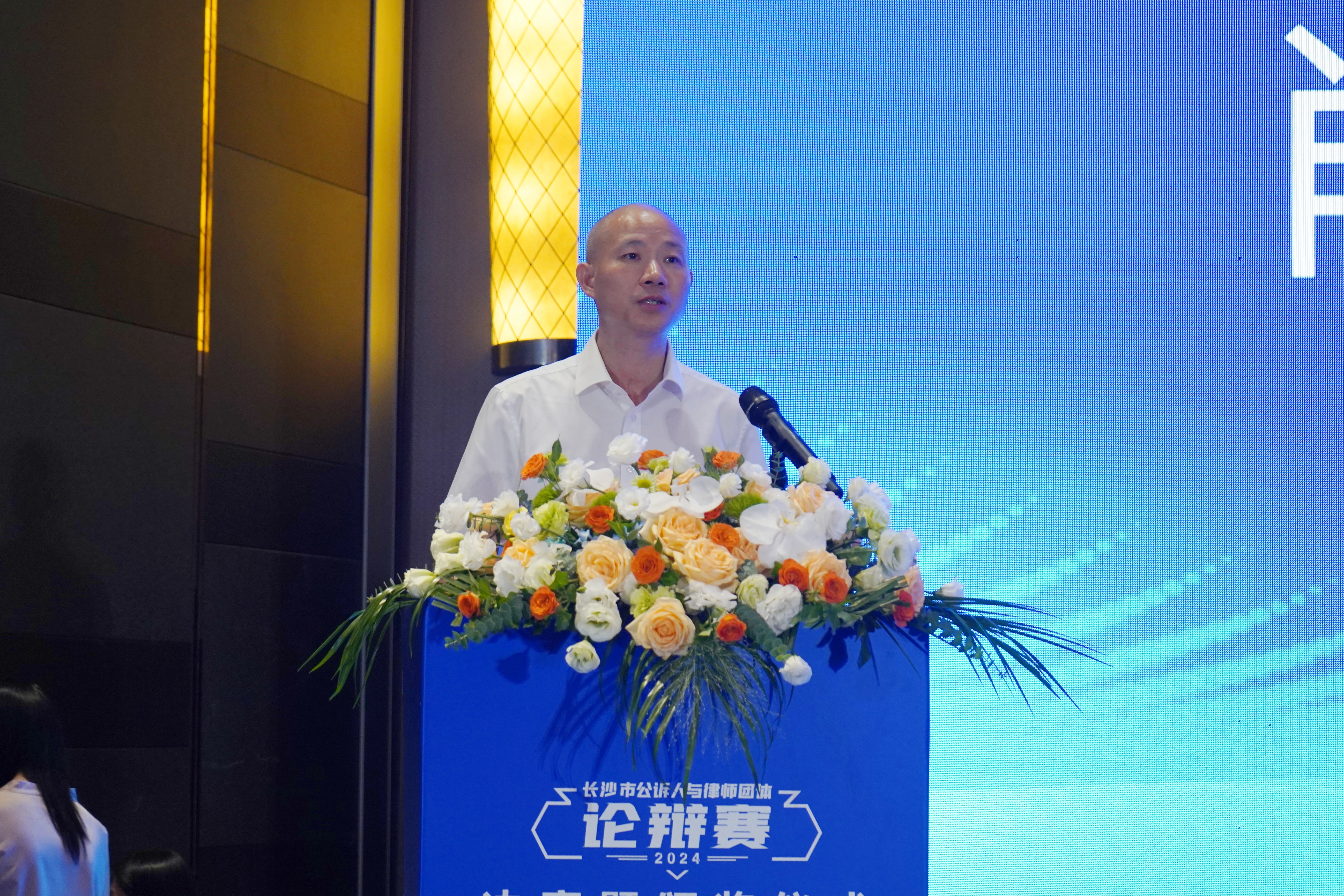 为深入学习贯彻习近平法治思想,积极构建法律职业共同体,助力长沙法治建设,由国产色情视频 、长沙市司法局联合举办的2024年长沙市公诉人与律师团体论辩赛于9月26日至27日隆重举行。国产色情视频 党组书记、检察长余湘文,市司法局党组副书记、副局长肖文辉出席活动并讲话。
