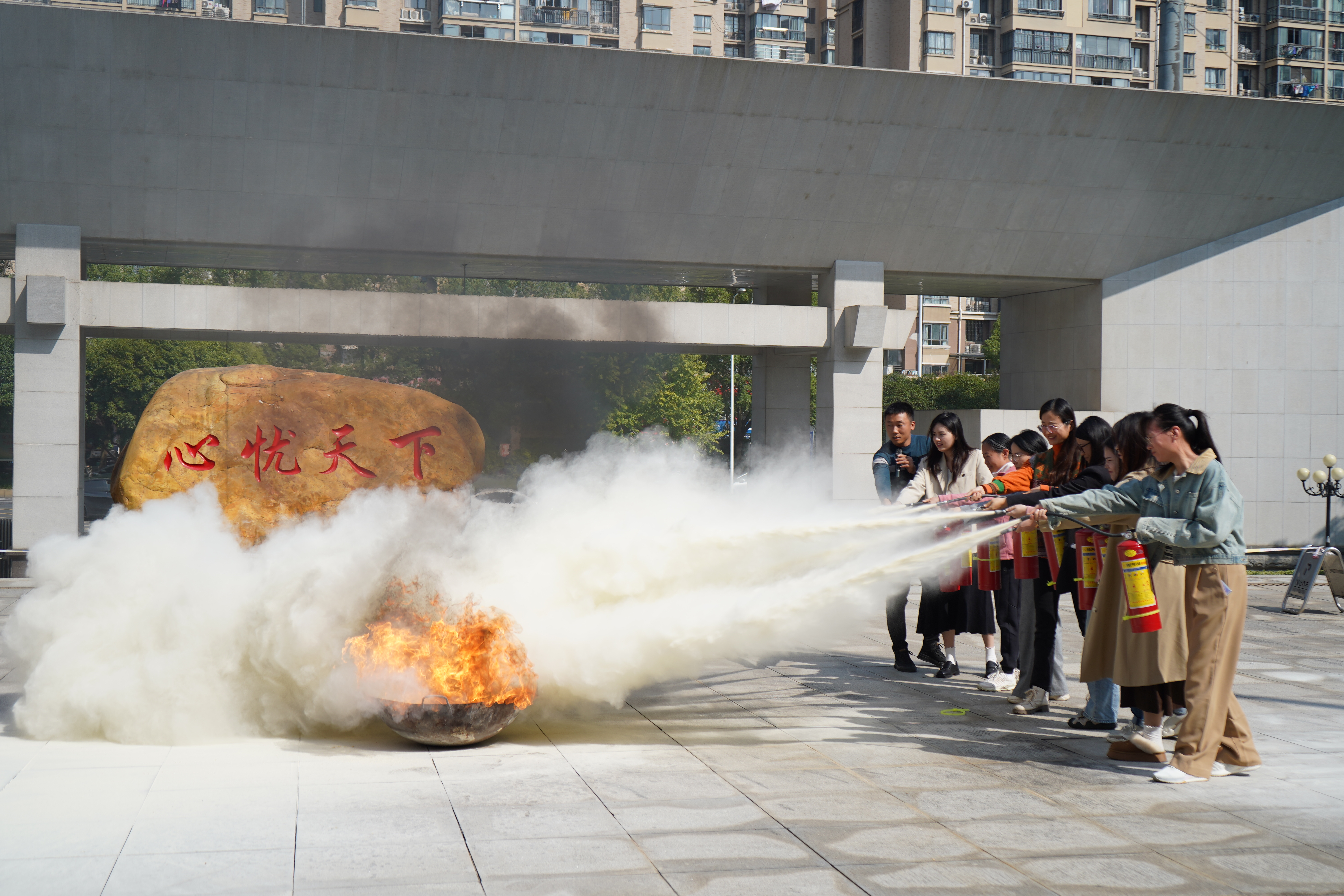 在灭火实操环节,培训教官重点讲述灭火器的正确使用方式、如何扑灭煤气罐起火、消防栓灭火以及结绳自救的正确处置方法。参训人员在培训教官的专业指导下,拿起灭火器,对准火苗根部,准确迅速把“熊熊大火”“消灭”。