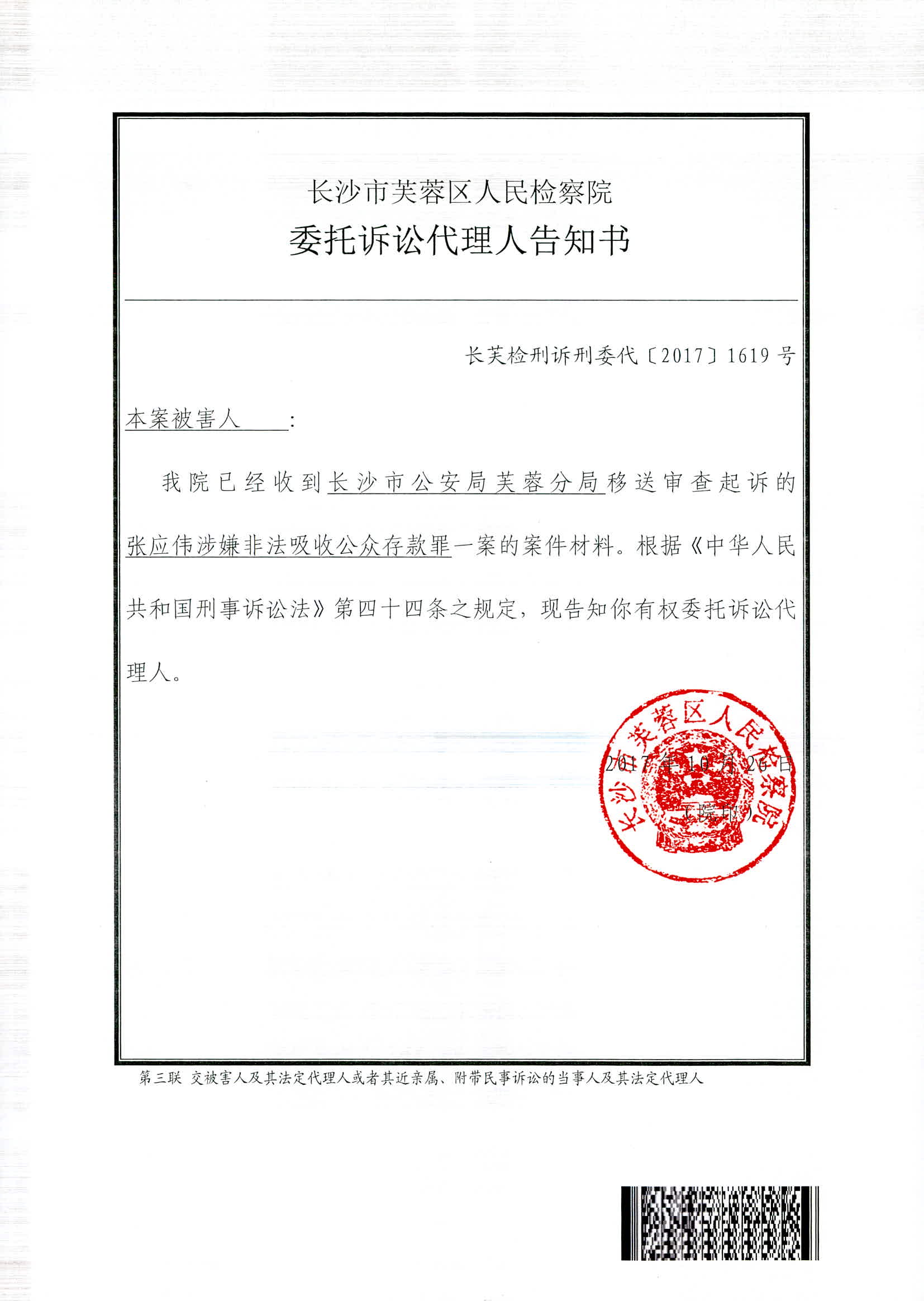 张应伟涉嫌非法吸收公众存款罪权利义务告知书
