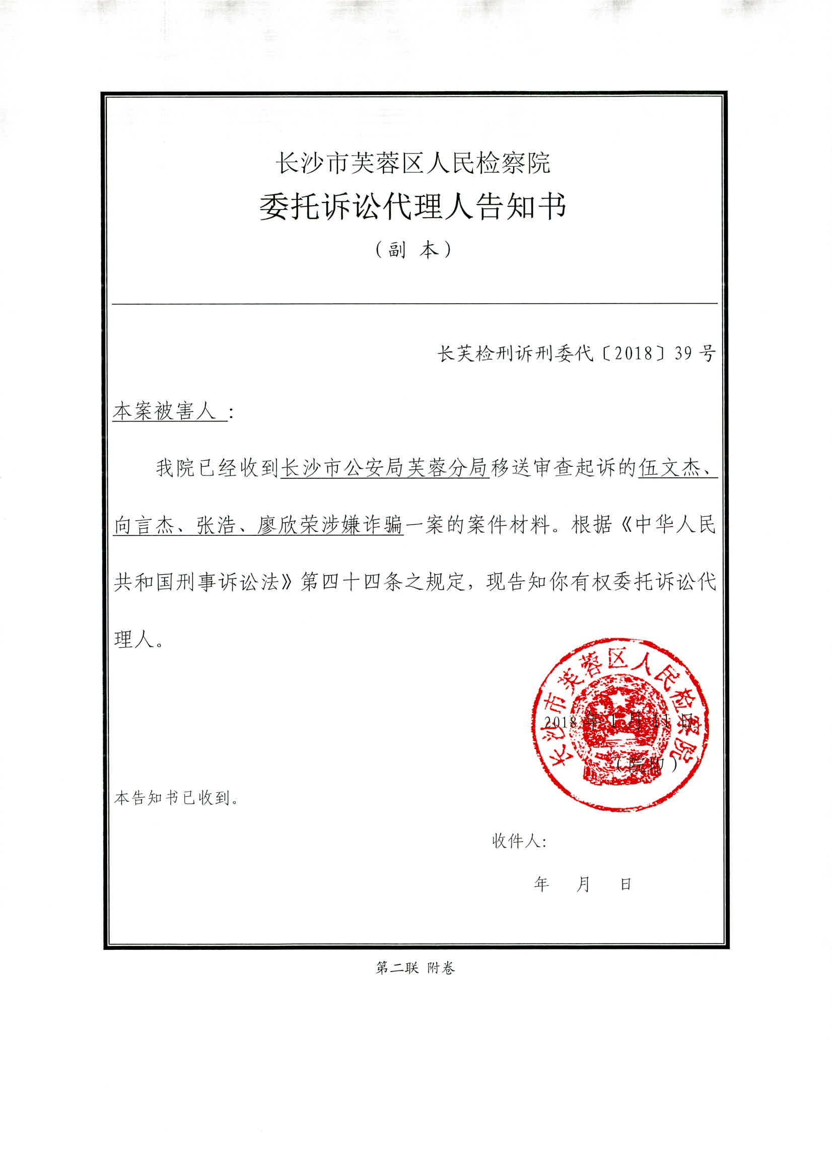 伍文杰等人涉嫌诈骗案权利义务告知书