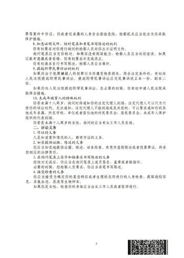 李治渊涉嫌非法吸收公众存款罪权利义务告知书