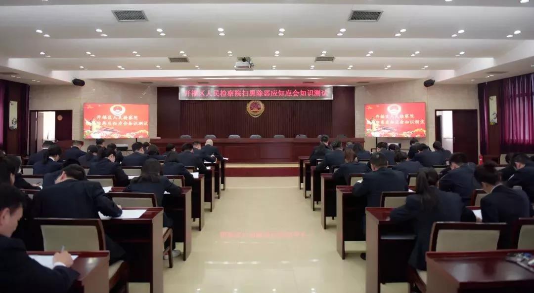 2019年3月21日下午,开福区检察院组织全体干警进行扫黑除恶专项斗争应知应会知识考试。着重测试全体干警对扫黑除恶专项斗争应知应会知识的理解和掌握情况,以考促学,进一步激发全院干警学习扫黑除恶专项斗争知识的积极性,增强开展扫黑除恶专项斗争的责任感和使命感。