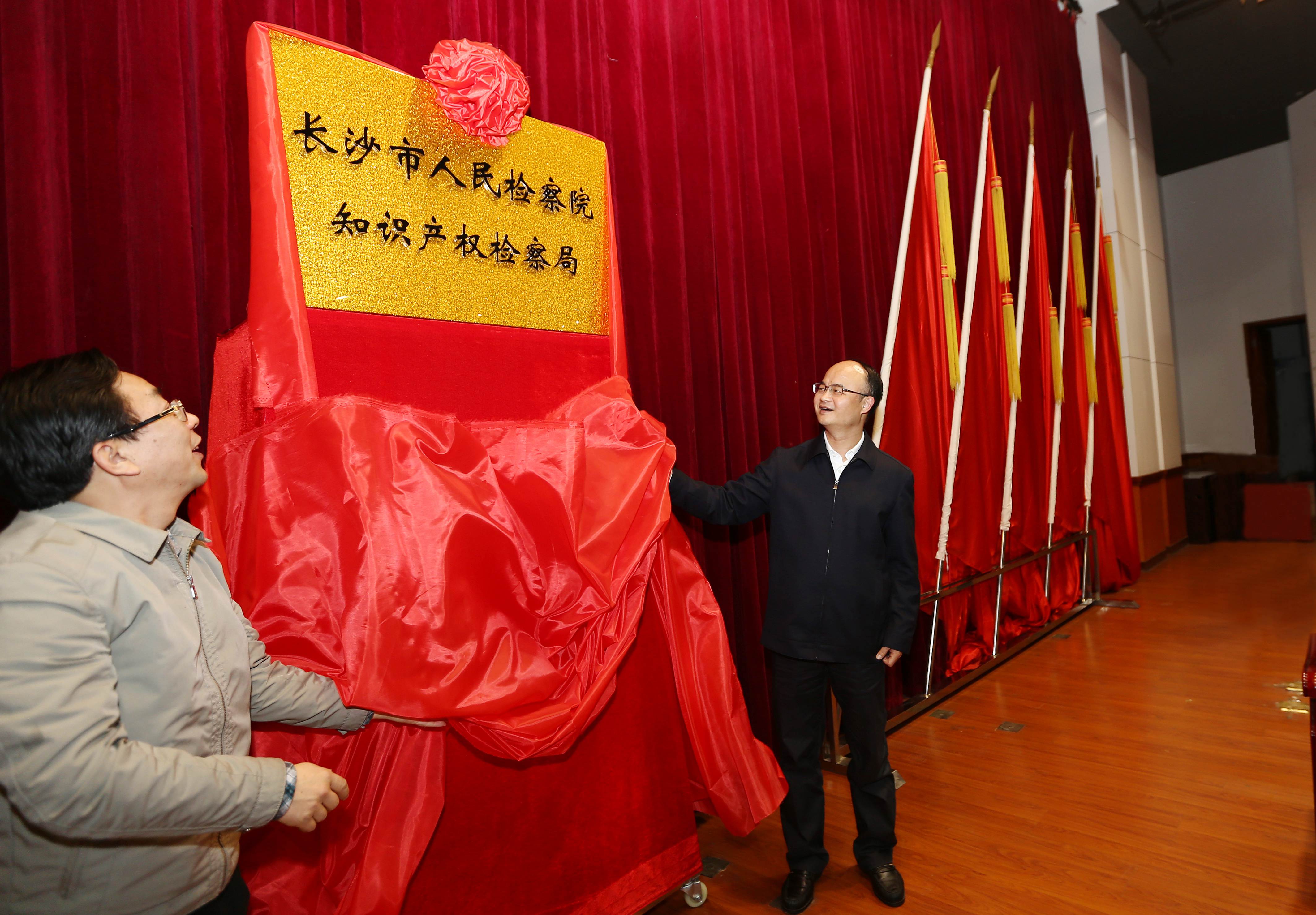 知识产权检察局举行了揭牌仪式。省政协副主席、科技厅厅长赖明勇,省检察院党组书记、检察长游劝荣出席仪式,并为知识产权检察局揭牌。