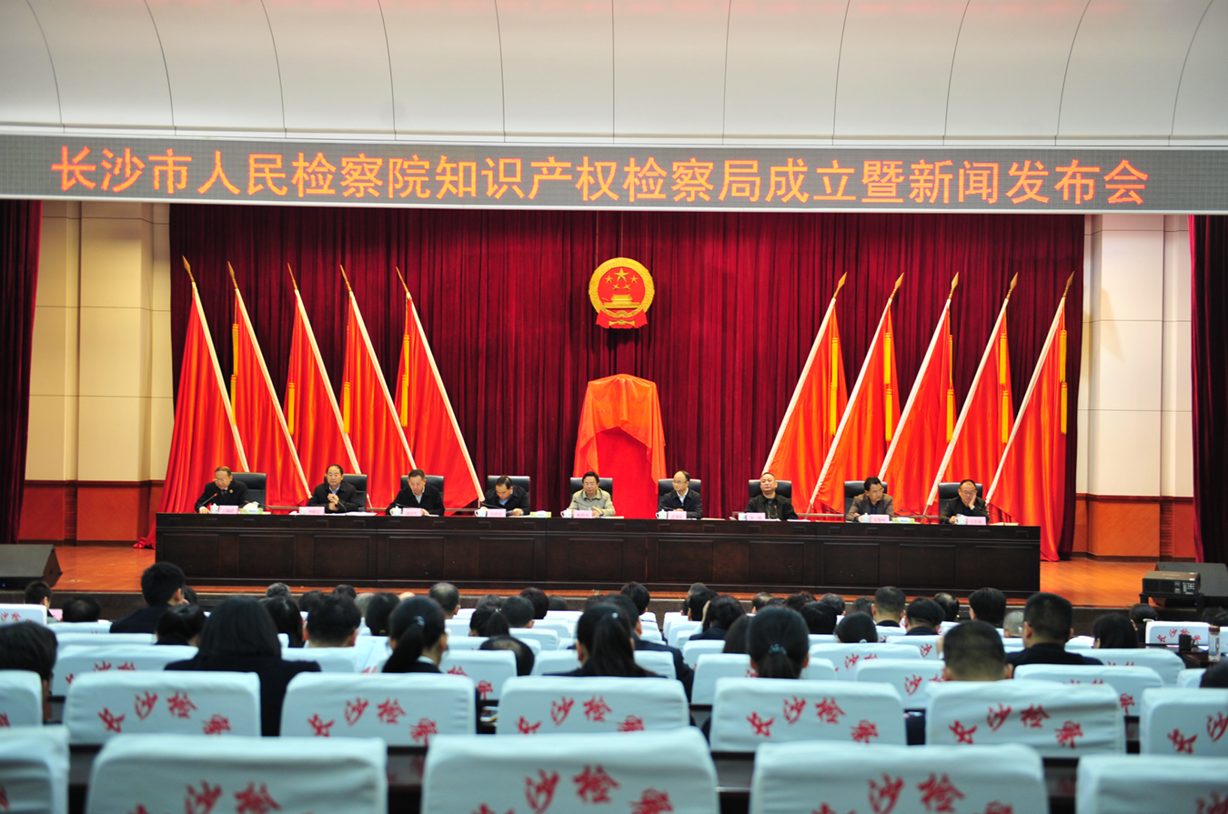 的专利权、商标、版权、非物质文化遗产等知识产权量在全国具有重要地位,其中省会长沙市的知识产权量占全省70%以上。长沙拥有专利创造数量连续2年位居全国省会城市第7位,每万人有效发明专利拥有量居全国省会城市第4位。但目前长沙知识产权领域面临民事维权成本高、刑事犯罪打击力度不够、两法衔接机制不畅等问题,影响企业创新和经济发展,加强知识产权司法保护和法律监督刻不容缓。2016年11月,我院成立知识产权检察机构筹备领导小组和工作小组,开展了系列筹备工作。 2017年1月,我院被批准成立了知识产权检察局。按照“三检(民事、行政和刑事)合一”、“五项(查办、批捕、起诉、监督、预防)融合”的指导思想,主要履行查办涉及知识产权领域行政监管和行政执法中的职务犯罪及知识产权领域刑事案件的审查逮捕、审查起诉、出庭公诉相关工作等7项职责。下一步,检察机关将按照以下七点工作设想开展工作:一是以专业化为基础推动工作的全面开展。二是创新工作机制,加强制度建设。三是加大办案力度,确保知识产权司法保护取得实效。四是加强规范化建设,提升办案工作的质量与水平。五是强化知识产权领域法律监督工作。